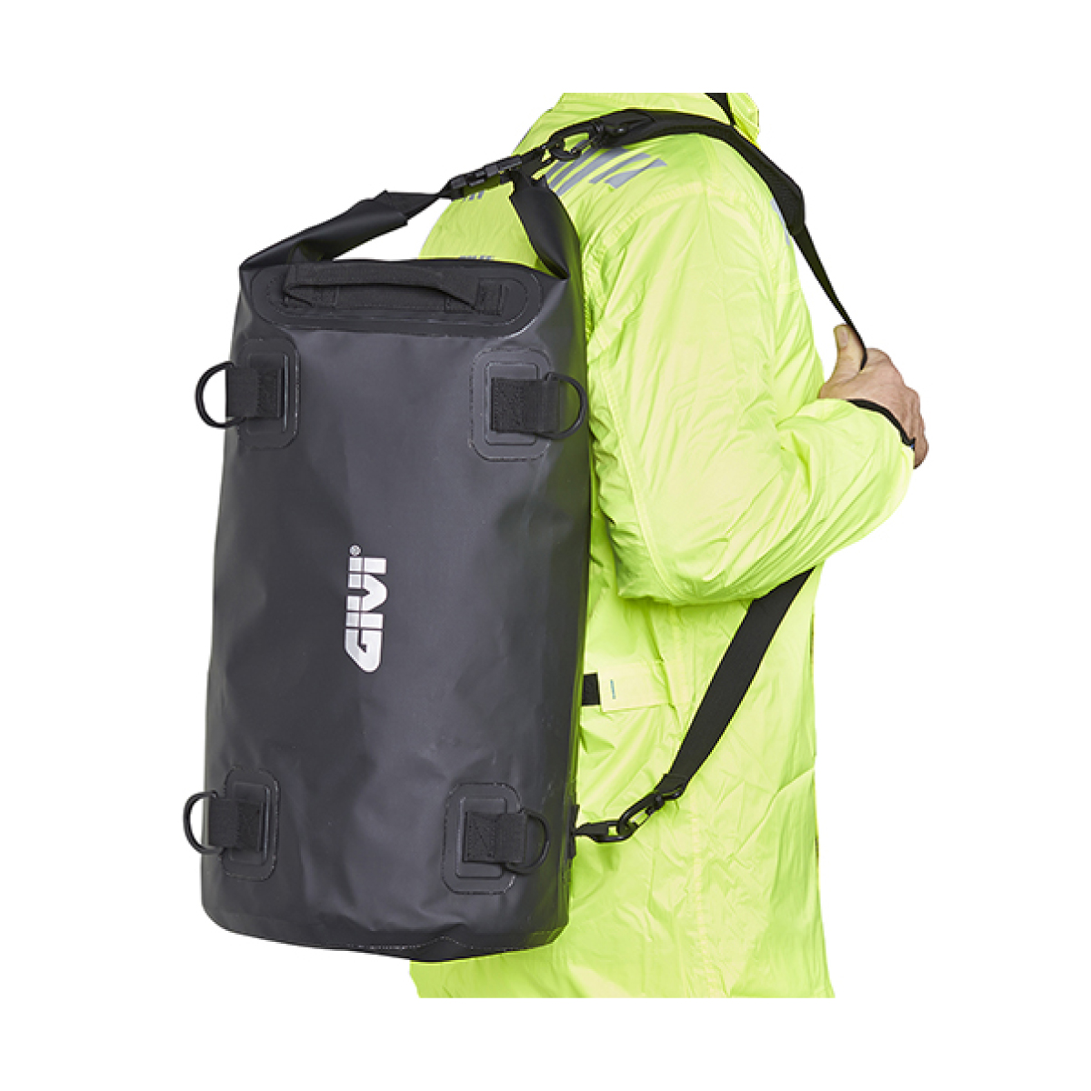 Bolsa sillín cilíndrica impermeable 30 L., color negro.