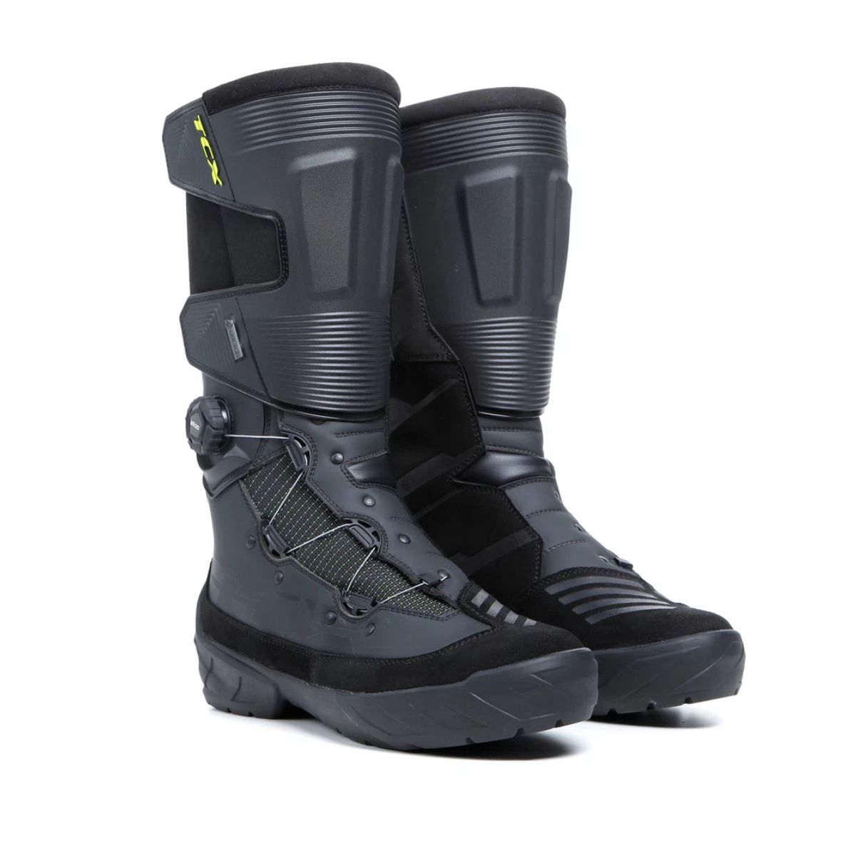 Botas Certificadas Infinity 3 GTX Impermeables y transpirables con membrana Gore-Tex®. Refuerzos en puntera, talón y espinilla, suela Groundtrax® para off-road, y sistema de ajuste con rotor para mayor confort y seguridad.