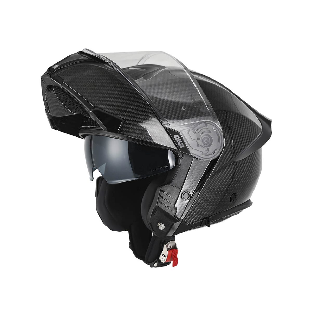 El casco GIVI X50 es un casco abatible de la marca GIVI que se ha posicionado en la gama de cascos de fibra de carbon. Es un casco diseñado para moteros que buscan ligereza, alto rendimiento y ventilación, sin renunciar al confort para rutas largas. Está diseñado para ofrecer la versatilidad de un casco abierto y la protección de un integral.