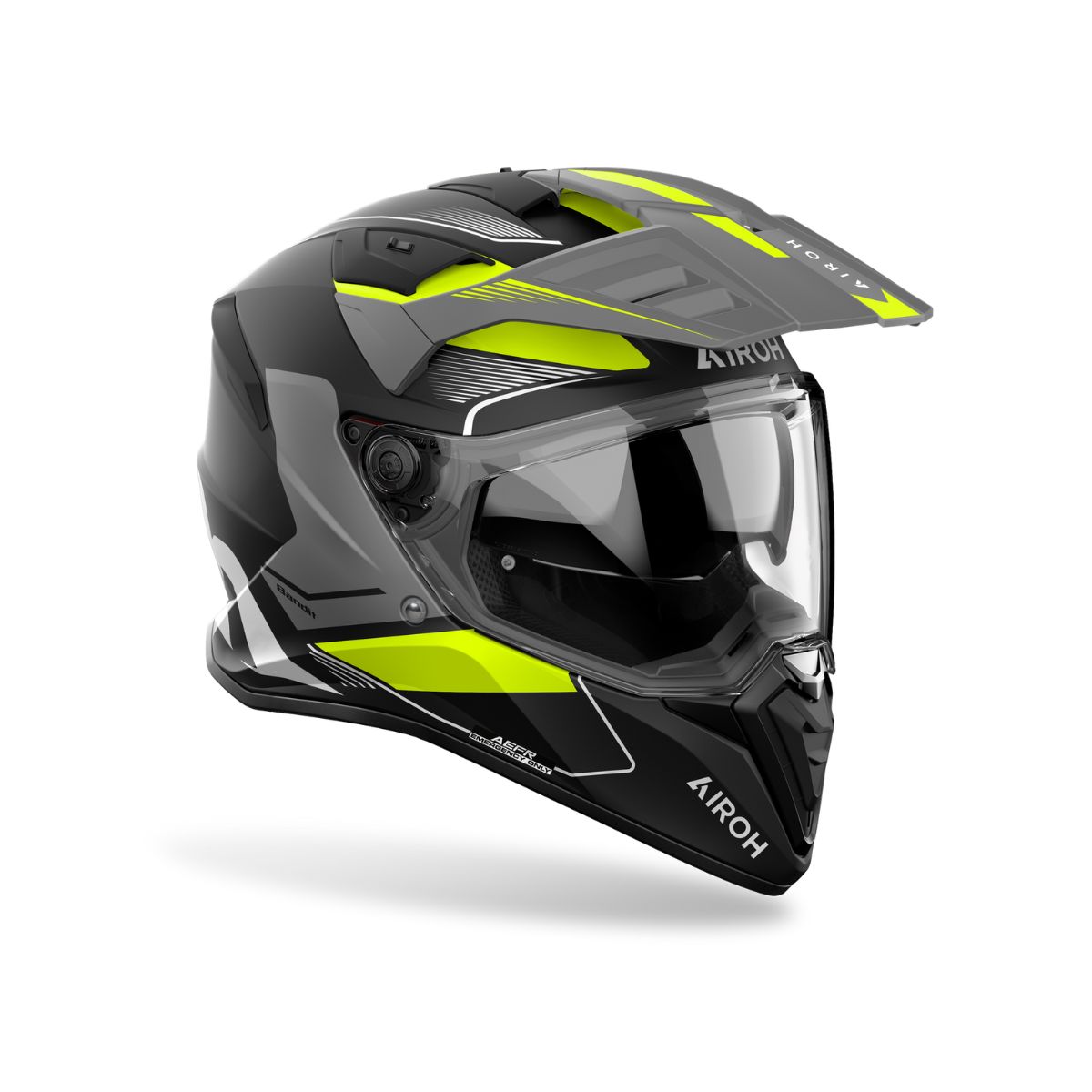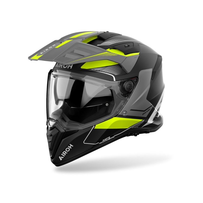 El campo de visión extra amplio, el visor solar interno y el sistema de ventilación de alto flujo garantizan comodidad y control en todo tipo de trayectos. Interior técnico, sistema ASN (Airoh Sliding Net) para dispersión de energía y AEFR (Emergency Fast Release) para extracción rápida en emergencias.