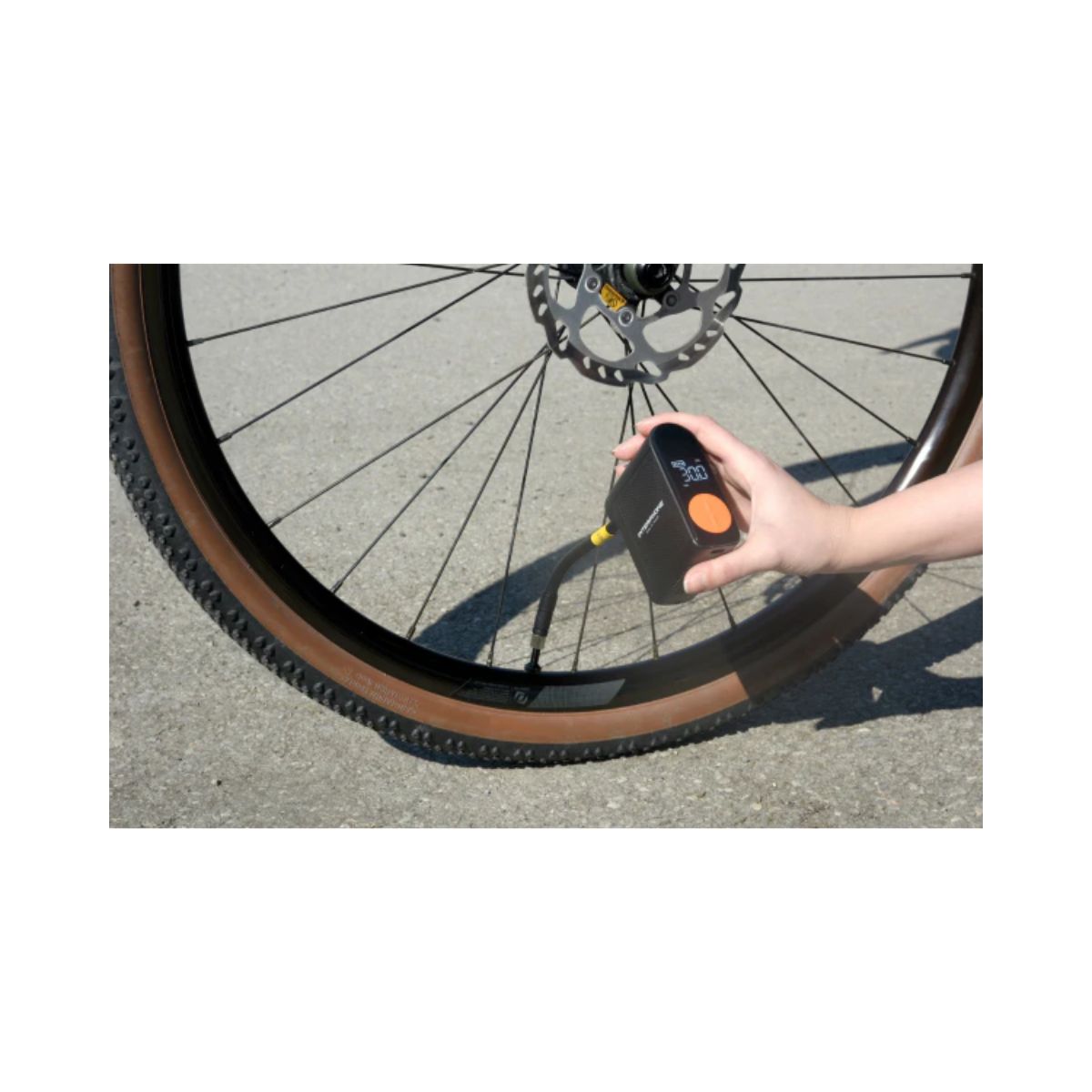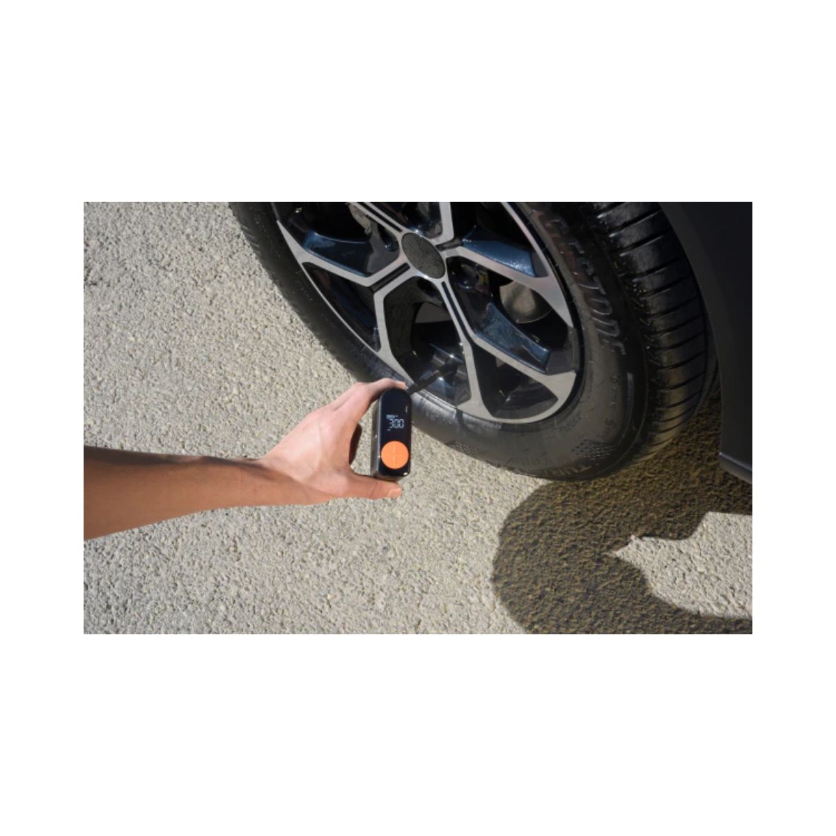 Este es un mini compresor de aire recargable, compacto y de alto rendimiento, ideal para motoristas, ciclistas y conductores en general que buscan una solución para mantener la presión correcta de sus neumáticos.
