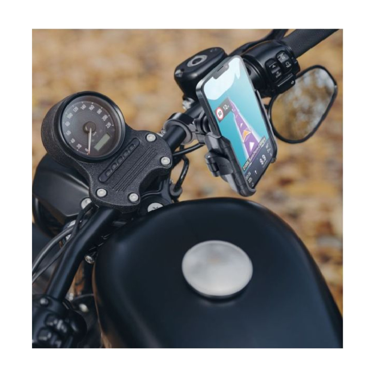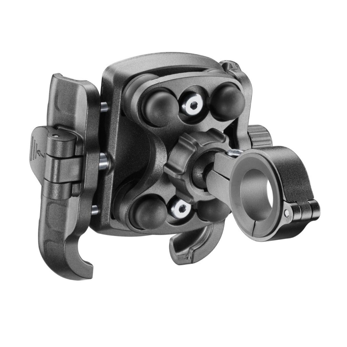 El soporte universal para moto Crab Pro es ideal para su uso en ciudad gracias a la integración del nuevo módulo antivibraciones Pro compuesto por 4 amortiguadores elásticos que garantizan la máxima protección del smartphone. Con el Crab Pro , puedes usar el teléfono con su funda, su diseño de hecho fue creado para acomodar dispositivos con una profundidad mayor que el estándar. Se puede instalar en barras con un diámetro entre 12 y 32 mm. Su diseño