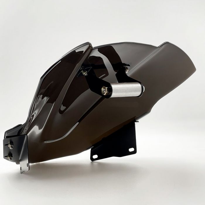CÚPULA Pantalla en ABS resistente al alto impacto. Mejora la aerodinámica al conducir. Color negro. Soporte para celular. Protege contra el polvo, lluvia, viento fuertes y grava de la carretera.