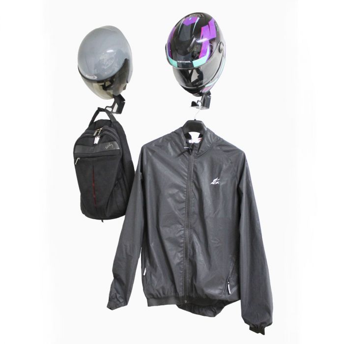 – Organizador 3en1 para casco, chaqueta y bolso, nunca más dejaras tu kit motero tirado en cualquier lugar.
