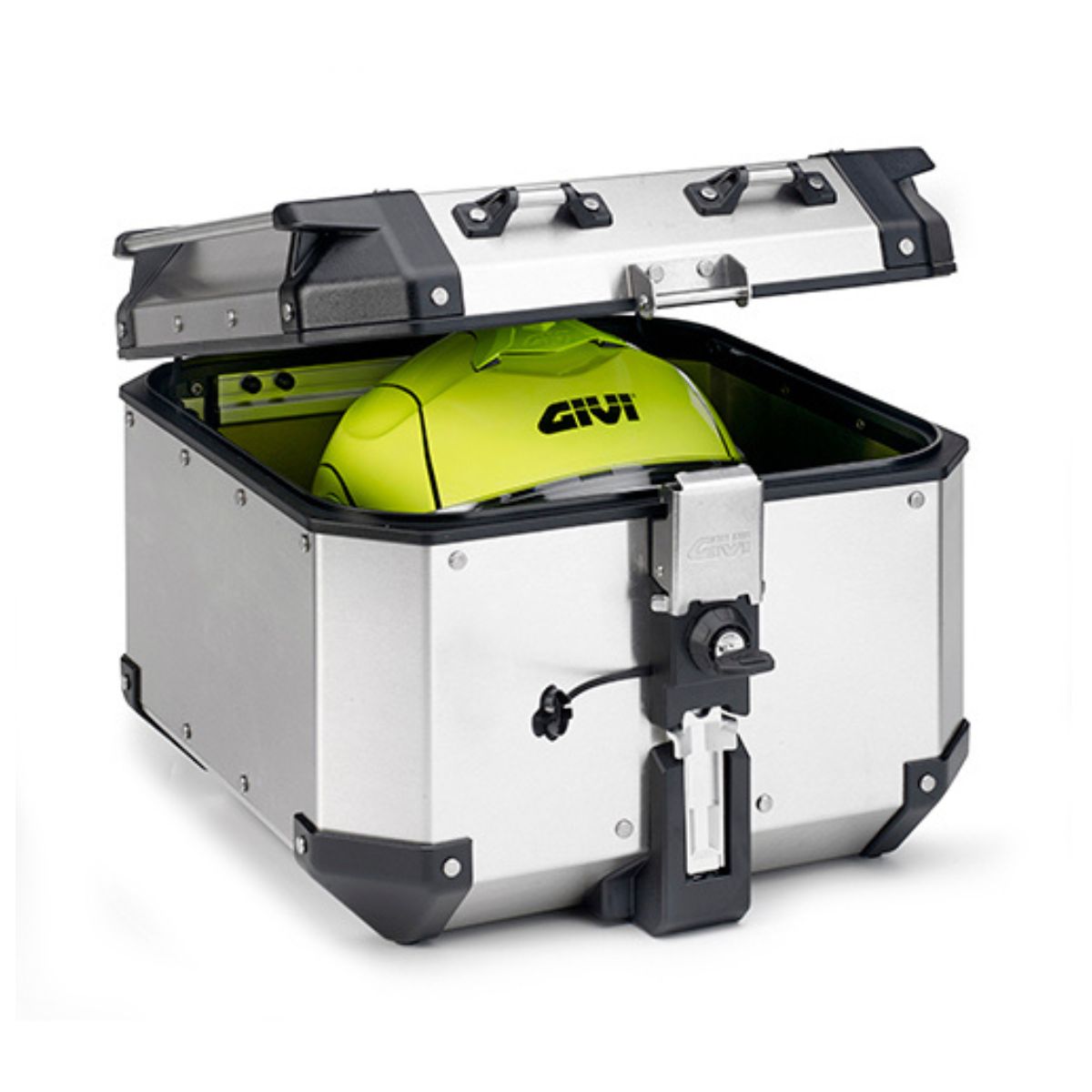 Su amplio espacio permite almacenar un casco modular o integral. Además, cuenta con cuatro pasa correas en la tapa para sujetar bolsas u otros objetos adicionales. En el interior, se puede fijar una red elástica (se vende por separado) para asegurar el equipaje, mientras que la alfombrilla anti-vibraciones en el fondo protege contra golpes y vibraciones durante el trayecto.