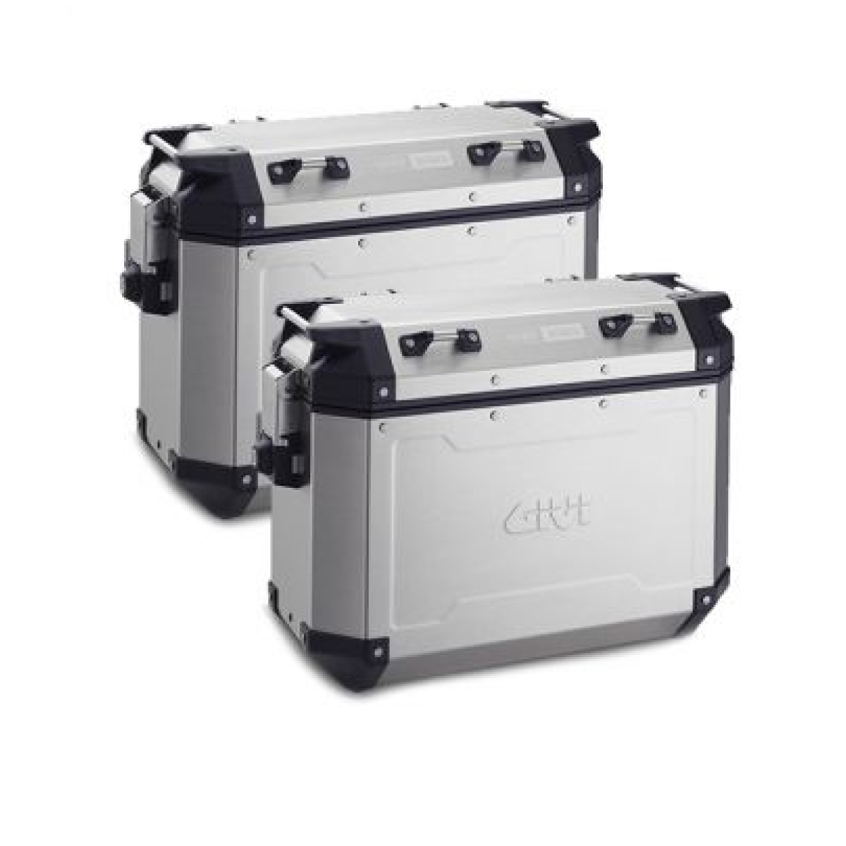 Maletas laterales Trekker Outback con estructura de aluminio color aluminio natural con refuerzos internos de aluminio perfilado.