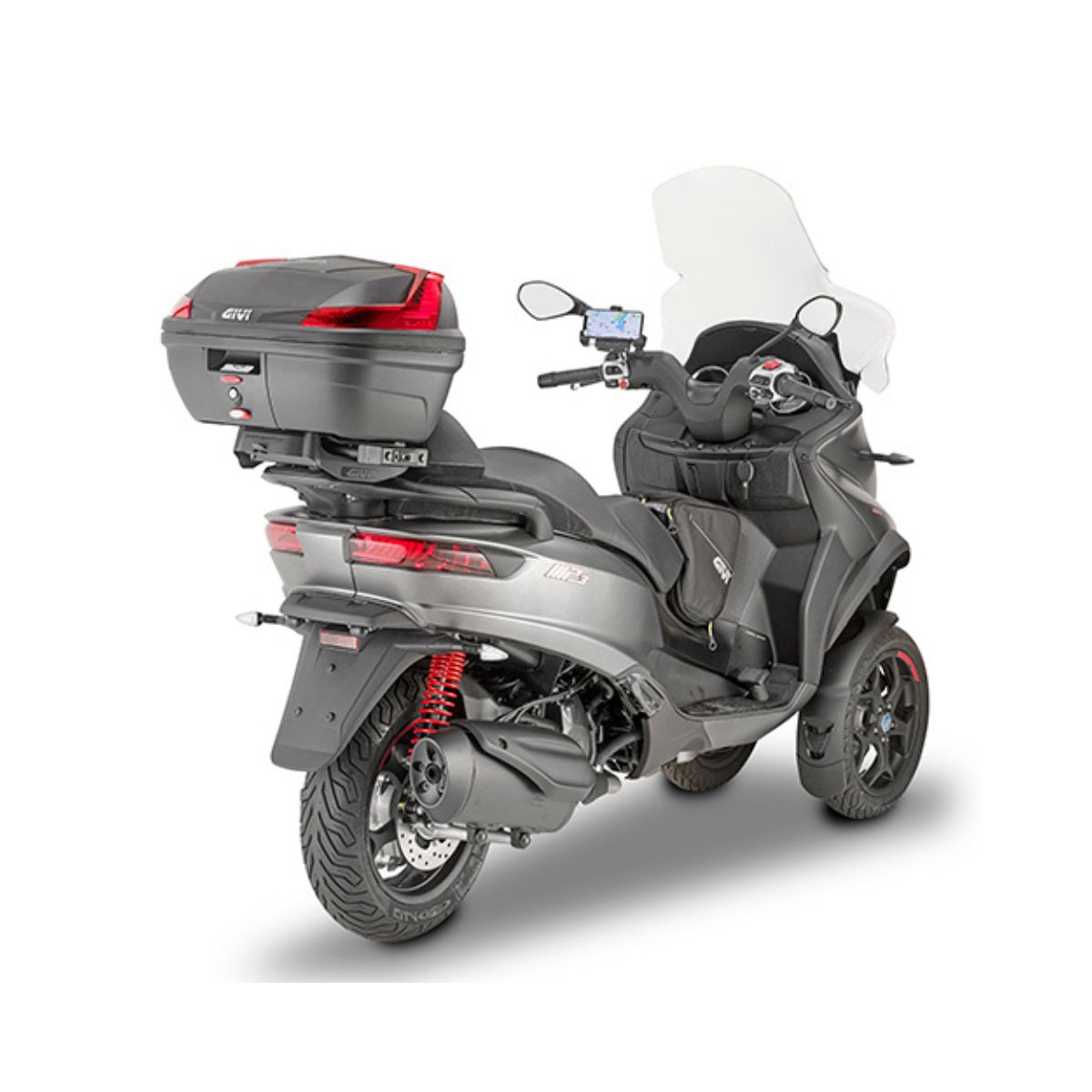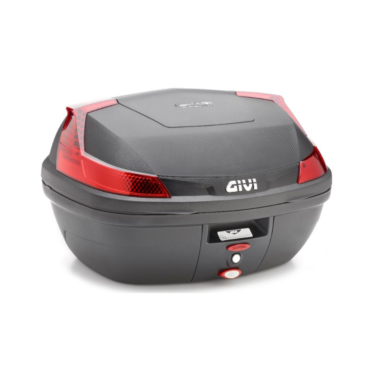 Baúl Givi MONOLOCK® de 47 L en color negro con catadióptricos rojos.