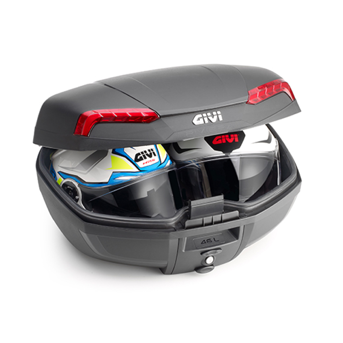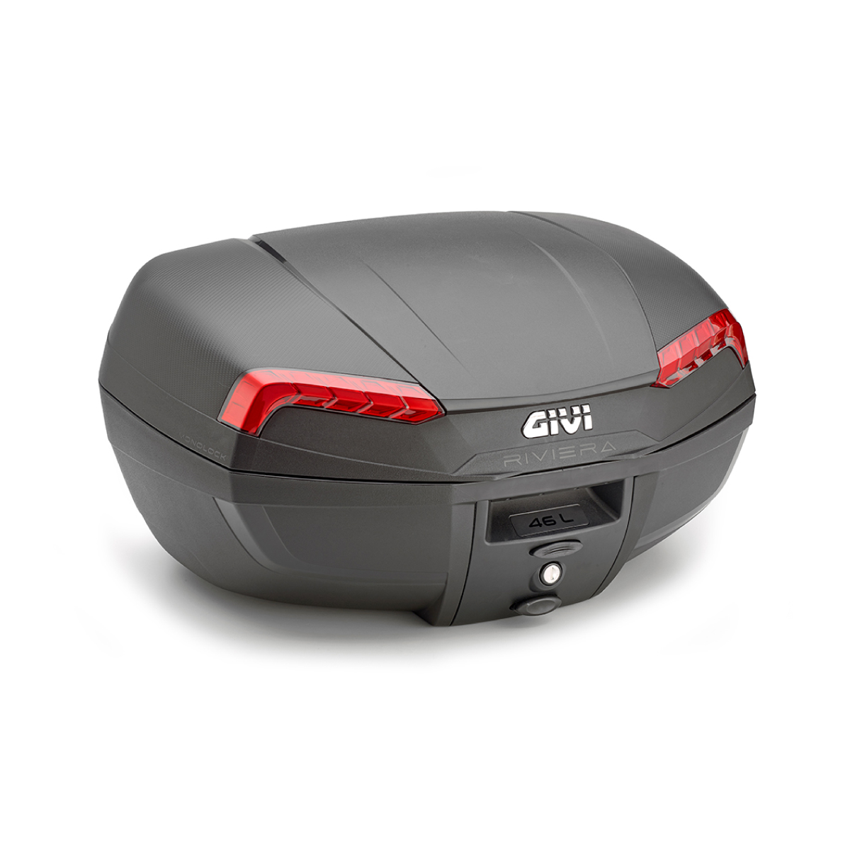 El RIVIERA es el nuevo baúl de alta gama de GIVI con fijación MONOLOCK. Este baúl ha sido creado utilizando un sistema de moldes con relieves que permite obtener una estructura más rígida en toda la línea de contacto entre las dos carcasas, por lo que mantiene las líneas sutiles y redondeadas favoreciendo su aspecto aerodinámico. El resultado es un aspecto exterior limpio y una estructura completa del producto mucho más resistente que el estándar normal, usando los mismos materiales.