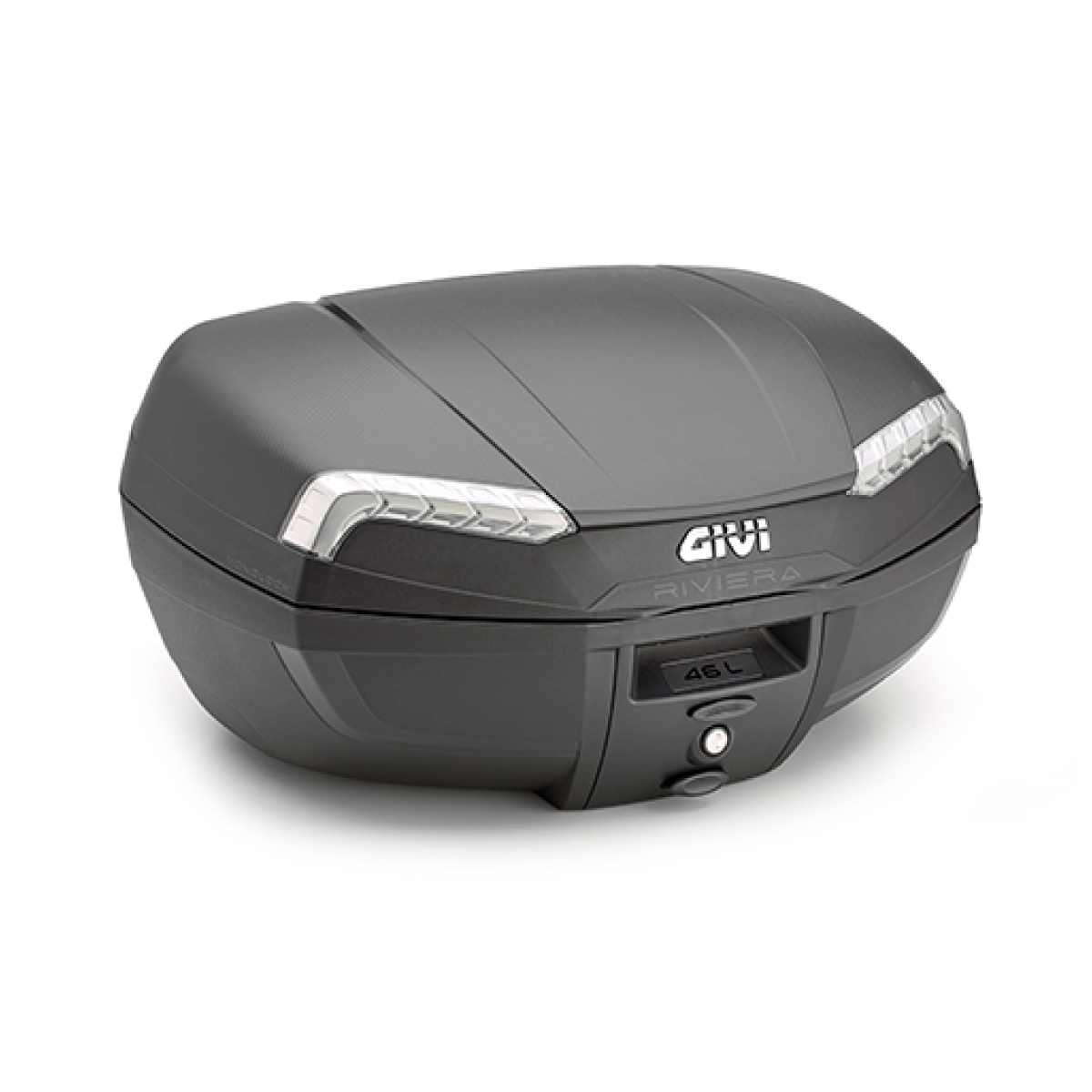 El RIVIERA es el nuevo baúl de alta gama de GIVI con fijación MONOLOCK. Este baúl ha sido creado utilizando un sistema de moldes con relieves que permite obtener una estructura más rígida en toda la línea de contacto entre las dos carcasas, por lo que mantiene las líneas sutiles y redondeadas favoreciendo su aspecto aerodinámico. El resultado es un aspecto exterior limpio y una estructura completa del producto mucho más resistente que el estándar normal, usando los mismos materiales.