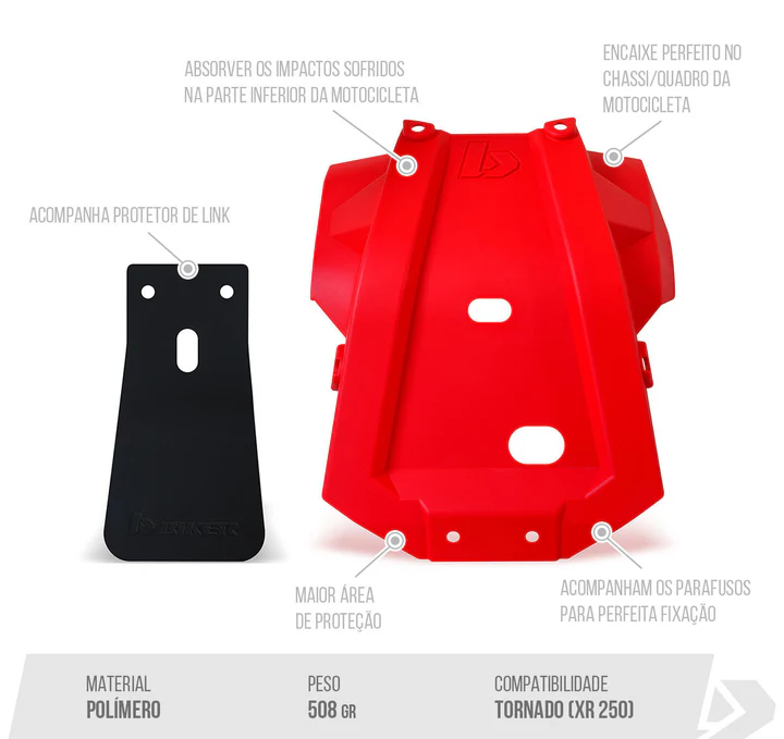Nuestro protector de cárter es un producto fabricado con polímero de alta resistencia. Diseñado para proteger tu moto contra golpes y abrasión causados por piedras o troncos, este protector ofrece una excelente protección para el cárter, asegurando la integridad de tu motocicleta en terrenos difíciles.